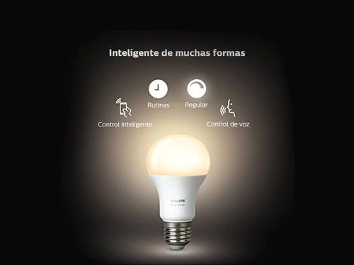 Kit de inicio ideal para comenzar a experimentar el universo Philips Hue. El Kit contiene el bridge Hue, también llamado puente, y 2 focos Philips Hue blanco cálido. HAGA QUE PAREZCA QUE USTED ESTÁ EN SU CASA. Use la Philips Hue app para programar rutinas de iluminación cada vez que esté lejos de casa. Sus luces inteligentes se encenderán en los horarios seleccionados, e incluso a veces unos minutos antes o después para que imiten de forma exacta su presencia en la casa. LLEGA A UNA CASA LLENA DE LUZ Configure su Philips Hue app para que reconozca cuándo esté cerca de casa; antes de que salga del auto o llegue a la entrada, las luces inteligentes seleccionadas se encenderán automáticamente. CONTROL DE LUCES INTELIGENTES LEJOS DE CASA La Philips Hue app te da un completo control sobre las luces, aun cuando no estés en casa. Apaga o enciende las luces de manera remota usando la aplicación para asegurarte de que la casa esté siempre iluminada de la manera que desees. ILUMINA Y ATENÚA LAS LUCES INTELIGENTES El interruptor de regulador de intensidad de Philips Hue te permite encender las luces altas brillantes o bajas de manera inalámbrica. CONTROLA LAS LUCES CON LA VOZ Cuando te conectes con el Hue Bridge, puedes sincronizar las luces con Alexa, Apple HomeKit y Google Assistant y controlar las luces solo con la voz. Comandos de voz simples encienden y apagan las luces, las atenúan o abrillantan y hasta establecen una escena de luz. CENTRO DE AUTOMATIZACIÓN: Puente Hue El puente Hue es un componente esencial del sistema de iluminación inteligente personal de Philips Hue. Es el cerebro de la operación y comunicación entre los focos y la aplicación Hue que se asegura de que todo funcione al unísono.También habilita características de automatización inteligentes del hogar como rutinas de programación y temporizadores.