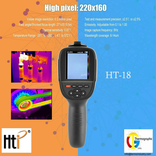 HT-18 es una cámara inferida que integra la medición de la temperatura de la superficie y la imagen térmica en tiempo real. El termómetro inferido tradicional necesita medir cada componente uno por uno mientras que no es necesario para la imagen térmica, lo que ahorra tiempo. Los problemas potenciales pueden mostrarse claramente en la pantalla a color. Esto es útil para los usos para ubicar el cursor de medición del punto central rápidamente y medir la temperatura.