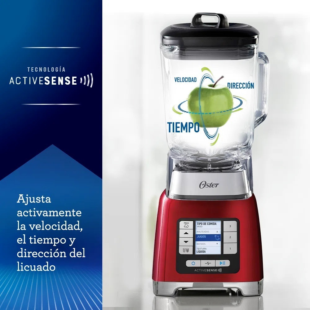 ¡Elimina las suposiciones al momento de licuar! La licuadora Oster® con TecnologĂa ActiveSense™ cuenta con sensores que detectan los ingredientes y ajustan la velocidad, la direcciĂłn y el tiempo con las que deben funcionar las cuchillas reversibles en cada programa configurado. Incluye una notificaciĂłn que alerta si es necesario añadir más lĂquido al vaso. ¡TĂş solo tienes que seleccionar el programa y la consistencia deseada bien sea más espesa, más lĂquida, con trozos o sin trozos y la licuadora hace todo por ti hasta obtener la textura perfecta! La avanzada tecnologĂa ActiveSense™ permite a tu licuadora percibir lo que hay en el vaso y ajustar el proceso de licuado para que prepare la comida que deseas con la consistencia que esperas.