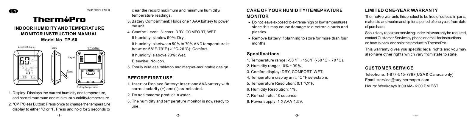 El TP-50 es el termómetro e higrómetro más práctico y más reciente del mercado. TP-50 es el dispositivo perfecto para el hogar con lecturas de temperatura de alta precisión y un sensor de humedad altamente sensible, que puede mejorar las condiciones de vida de usted y su familia. Además de las lecturas precisas, el TP-50 también puede proporcionarle actualizaciones diarias de los registros más altos y más bajos que se registraron para la humedad / temperatura del día, lo que le permite contrastar las lecturas actuales con las del pasado.