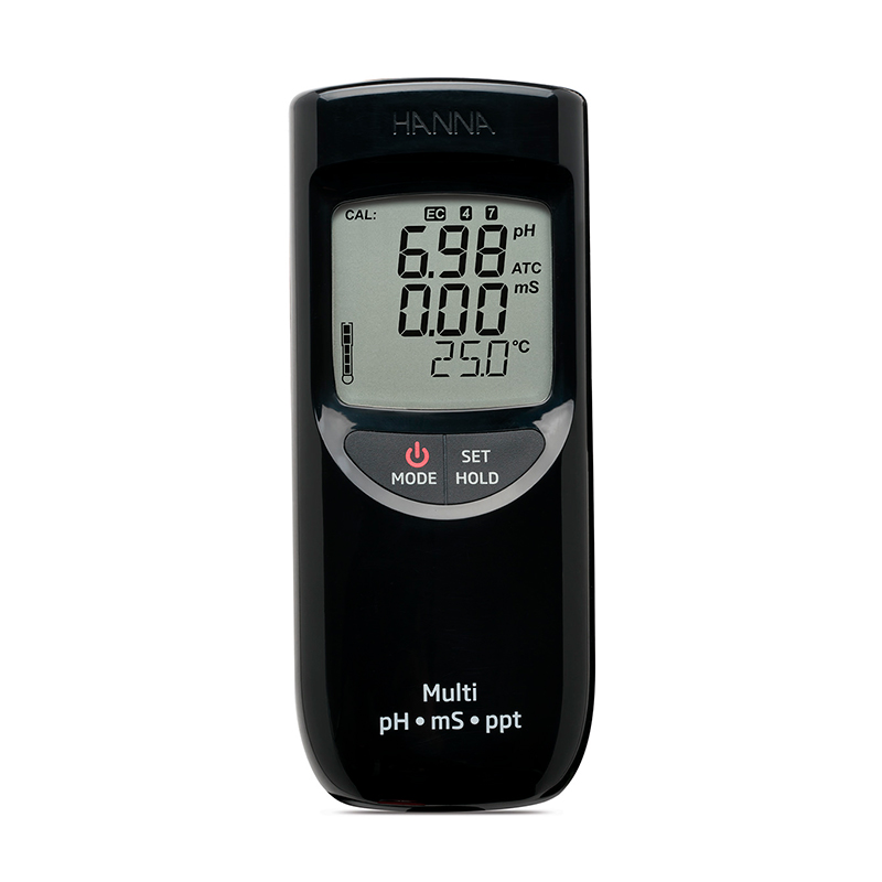El medidor portátil HI991301 cuenta con una gran pantalla LCD de múltiples niveles donde se muestran las lecturas. Un sensor de temperatura incorporado permite mediciones automáticas de pH y de compensación de temperatura. Son impermeables IP67, están dotados de una serie de funciones avanzadas para simplificar y agilizar las labores, sobre todo, en las medidas de campo. Cada medidor se suministra completo con sonda multiparamétrica HI12883, soluciones pH 4.01 y 7.01, solución de calibración de 1382 uS/cm y 1413 mG/L (ppm), solución de limpieza de electrodos, pilas, estuche resistente e instrucciones.