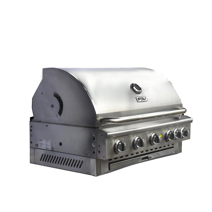 Nuestras parrillas integradas a gas FDV tienen la particularidad que su tapa gira en su eje, por lo que puedes ponerlas en cualquier lugar. Son completamente de acero inoxidable y vienen en 2 tamaños una para espacios reducidos y otra ppara espacios mas grandes, como esta que tiene 5 quemadores, para una familia numerosa.