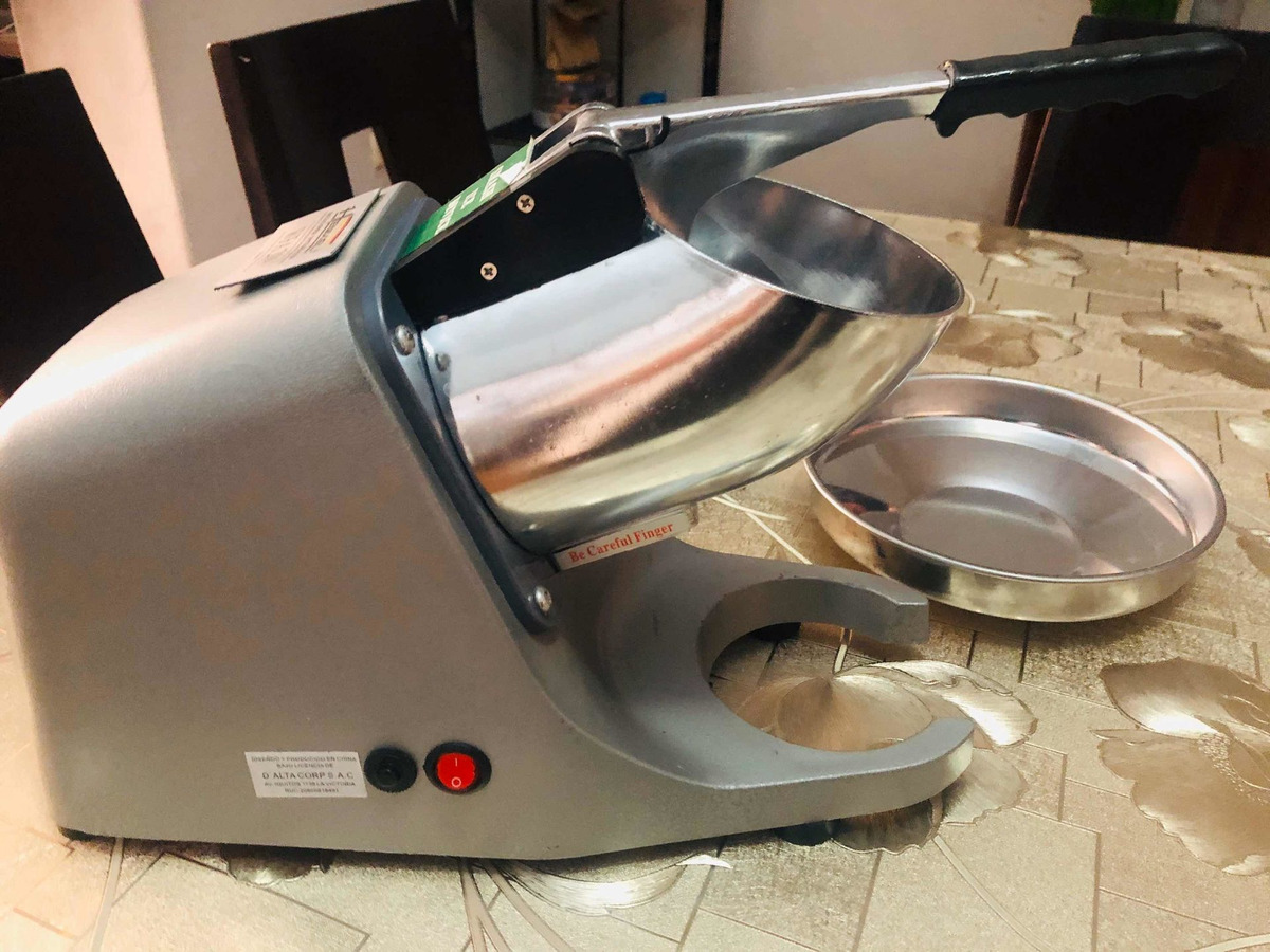 Picadora de Hielo Raspadillera Maquina Eléctrica Trituradora en Escama, es una maquina muy potente y resistente para satisfacer la demanda de sus clientes, obteniendo una molienda tipo nieve de muy buena textura y de buena apariencia. Este producto tiene un diseño muy elegante, con buenos acabados y sobre todo muy fácil de usar y de limpiar. Protección de seguridad para evitar accidentes, no entra en funcionamiento hasta que la tapa impide la visibilidad y penetración de la mano dentro de la cuchilla. Ideal para pequeños negocios y carretillas ambulatorias y también para todo tipo de negocios formales.