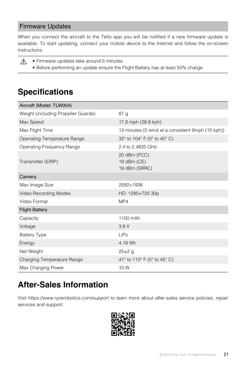 [1] El tiempo de vuelo estimado se ha calculado sin viento a una velocidad constante de 15 km/h (9.3 mph). Los tiempos de vuelos reales pueden variar en función del entorno.